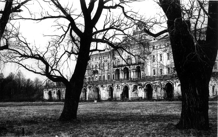 в восточном крыле - военно-морской цикл. Обязанностью курсантов ГФО было нести вахтенную службу во дворце. Дежурный по ГФО должен был постоянно находиться на посту, на первом этаже Константиновского дворца, и отвечать за порядок во всем западном крыле. С утра и до вечера время летело незаметно в обычных хлопотах по дежурству. Зимой темнеет рано, и часов в шесть мы уже закрывали входную дверь на засов. С приходом вечера становилось не только темно, но и тихо. Дворец находится в уединённом месте, вокруг него обширный парк, пруды и каналы (наверно, поэтому Константиновский дворец иногда называют замком). Четыре этажа (включая цокольный этаж) колоссального исторического здания, погруженного в почти полную темноту, и мы, два восемнадцатилетних парня в морской форме. Вокруг нас зимнее безмолвие и мрак. На ночь свет мы оставили только на лестнице и на нашем цокольном этаже, выключили даже в коморке, чтоб спать не мешал. В комнате этой было небольшое окошко под самым потолком и вторая дверь, на которую мы не обращали никакого внимания, и, как показали последующие события, абсолютно зря. Впоследствии оказалось, что это не просто дверь, а дверь, ведущая в мрачные, сырые и никому не известные многоярусные подвалы Константиновского дворца.