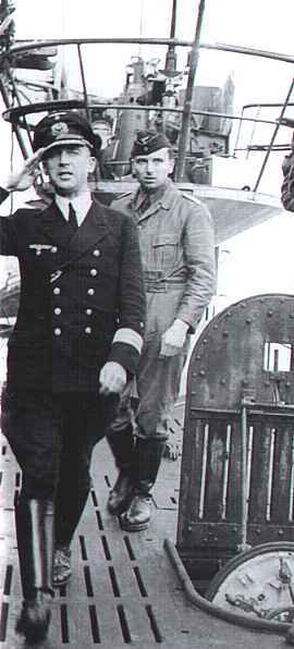Капитан-лейтенант Кречмер (справа) на U-99 после причаливания в Лорьяне 21 июля 1940 года.