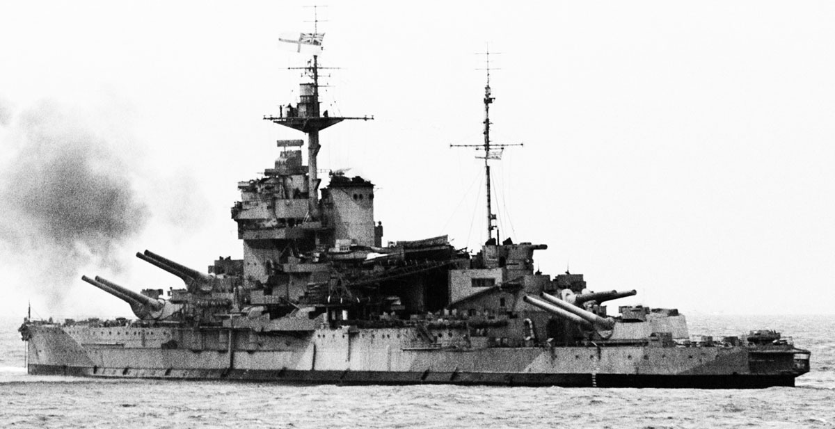 HMS Warspite обстреливает немецкие позиции в Нормандии во время высадки в День Д в июне 1944 года. Огневая мощь кораблей сыграла важную роль в успехе союзников в Нормандии.