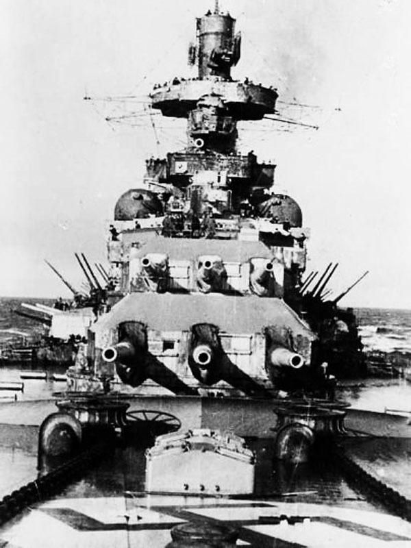 Часть основного вооружения немецкого линейного крейсера «Шарнхорст». Ему было приказано атаковать британский конвой JW55B, но военно-морская разведка и продуманная тактика позволили британцам развернуть корабли, чья общая огневая мощь потопила линейный крейсер 26 декабря 1943 года.