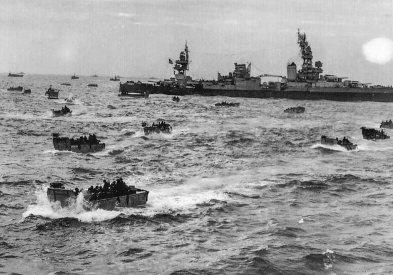 Солдаты, "запертые" в LCP, начинают проход мимо крейсера, чтобы высадиться на берег.