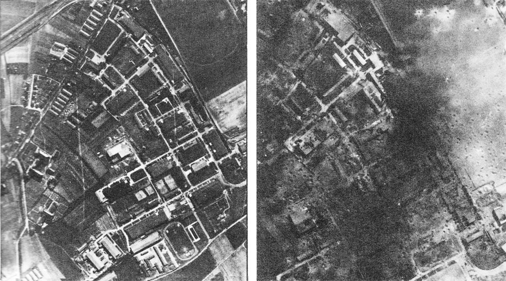 Промышленная цель до и после атаки ВВС США во Второй мировой войне.