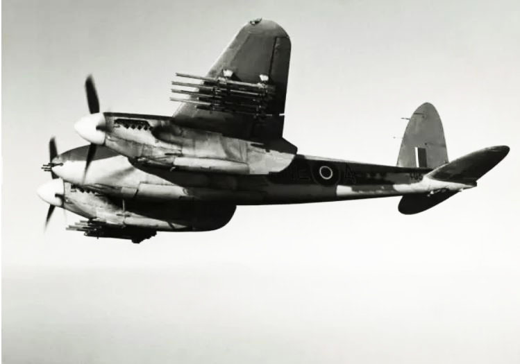 Mosquito Королевских ВВС. Один из самых универсальных и успешных самолётов войны, он участвовал во многих операциях, включая тактическое пресечение. Полностью деревянная конструкция De Havilland Mosquito, являющаяся примером инженерной изобретательности, вдохновленной трудностями войны, стала главным преимуществом во времена острой нехватки сплавов легких металлов. Большая часть самолета была сделана из фанеры. Фюзеляж представлял собой бескаркасную оболочку из пробкового дерева, зажатую между листами березы.