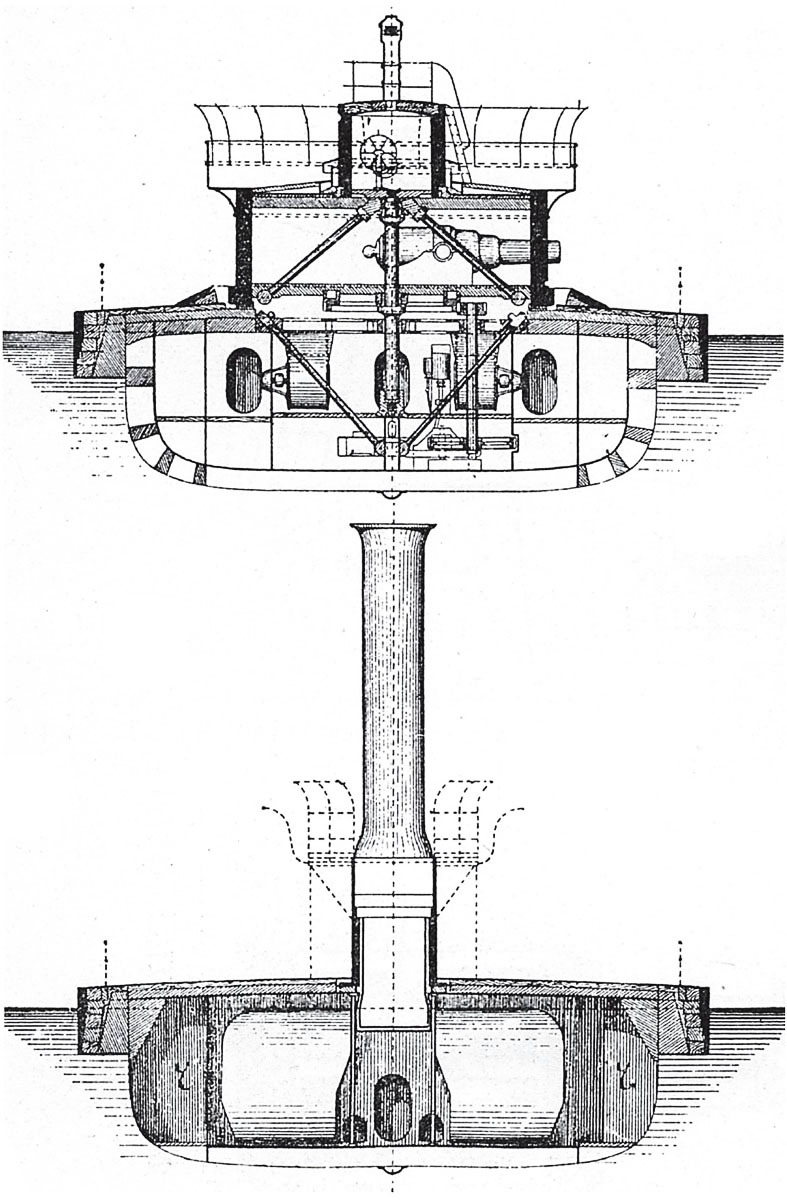 Экипаж 85 чел. Артиллерия: две 267-мм (10,5 дм) гладкоствольные дульнозарядные пушки. Позже вместо них установили две 119-мм нарезные казнозарядные, плюс 2—65-мм, 2 × 37-мм.