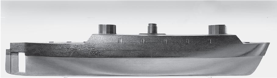 В центре корпуса построили длинный приземистый каземат с наклонными стенками, защищенный 3-дм броней из пакетов железнодорожных рельсов.