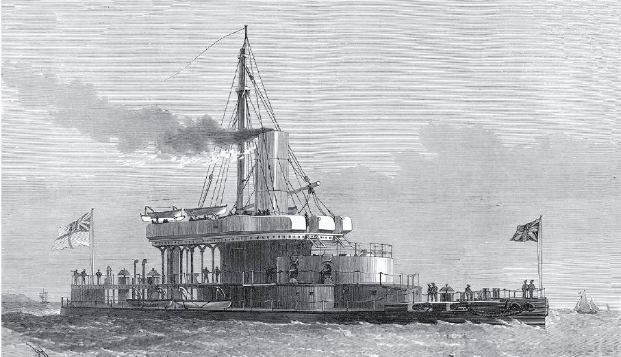 Когда в 1866 г. американский двухбашенный монитор «Миантономо» посетил Англию, британские инженеры тшательно его изучили и пришли к выводу, что могут построить корабль такого класса лучше американского.