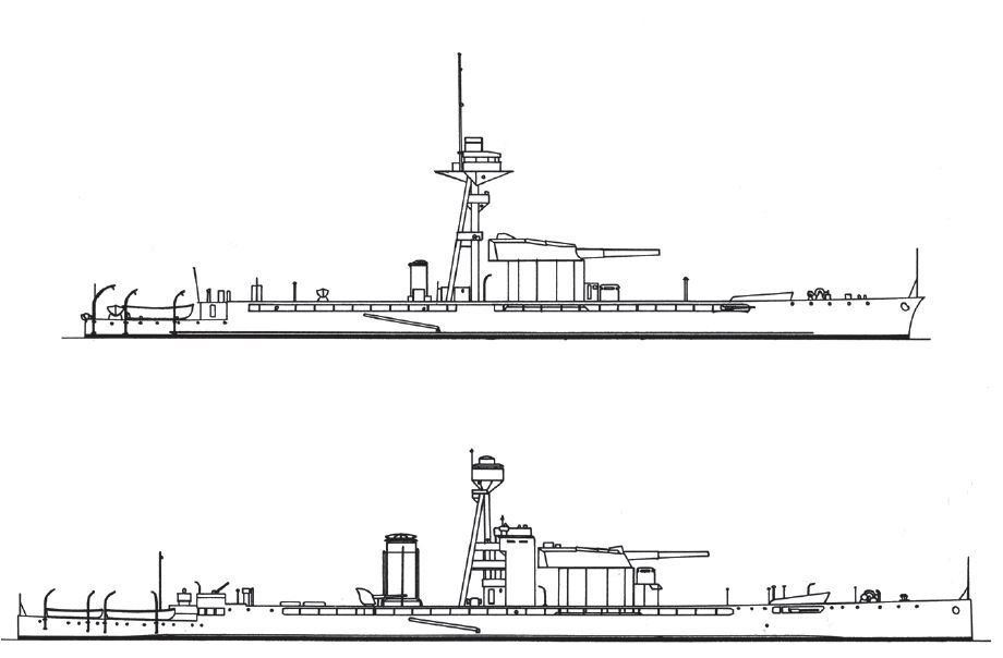 Поэтому в 1915 г. англичане очень быстро построили по их образцу ещё 19 (М15–М33), которые были намного меньше (650 т, одна 234-мм или две 152-мм пушки в одной башне). Правда, их осадка увеличилась на 10–30 см, до 1,8–2,1 м.