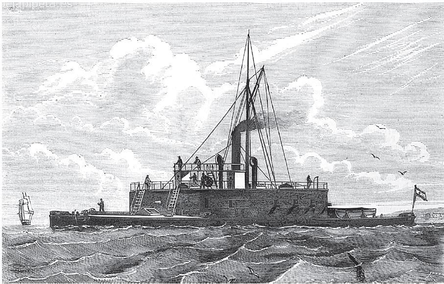 Со стороны он выглядел необычно. Издали казалось, что по морю плывет башня с двумя огромными орудиями и треногой мачтой. Только присмотревшись, можно было увидеть корпус, который почти полностью скрывался в воде.