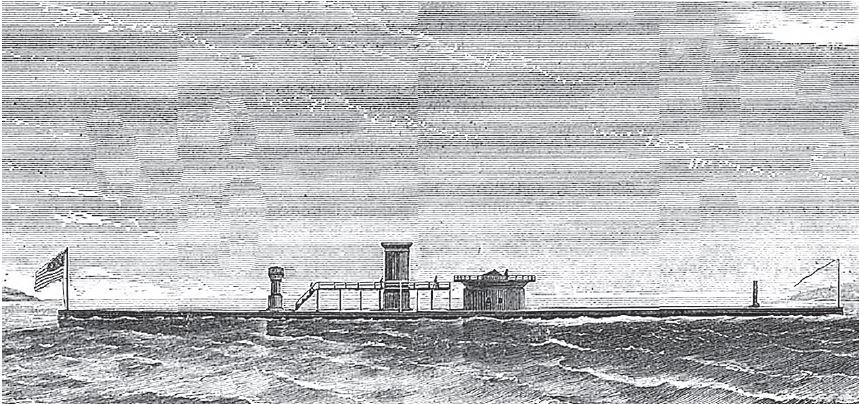 Не только в Америке некоторые изобретатели проектировали полупогружные боевые корабли. В 1862 г. морской префект портового города Тулон (Франция) объявил конкурс на разработку эскизных проектов кораблей береговой обороны «для защиты наших портов и гаваней».