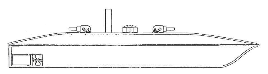 Боевую рубку прикрепили к задней стенке носового каземата, она чуть-чуть возвышалась над его крышей. Издали корабль выглядел как двухбашенный монитор.
