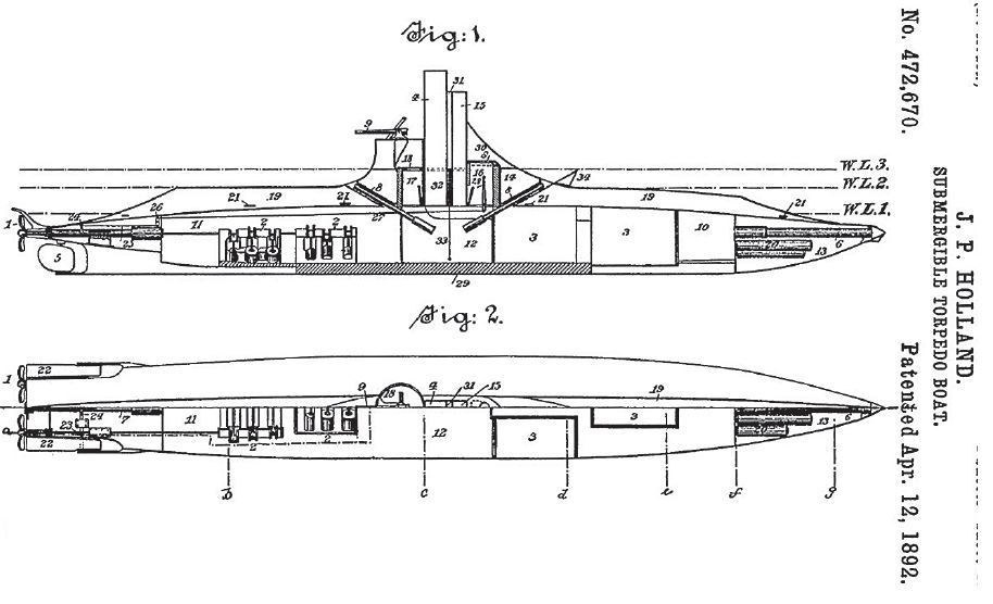 Патент 1892 г., выданный Д. Холланду на проект «Plunger».
