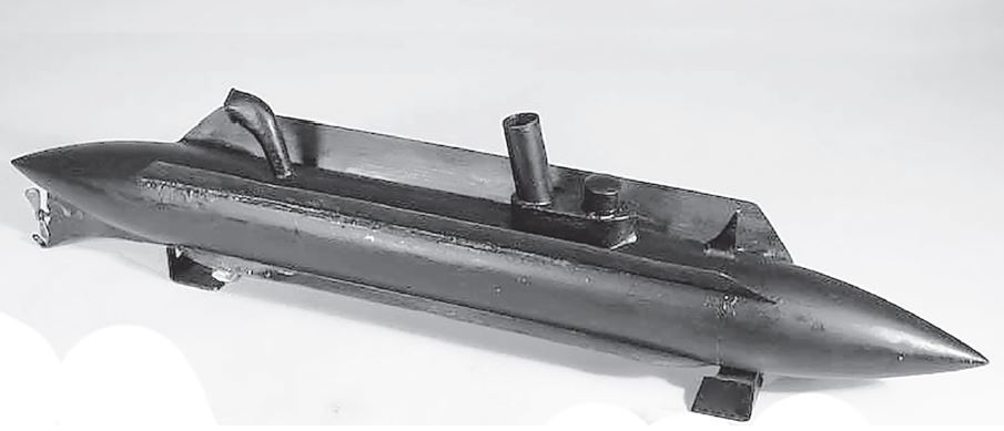Если же поднять их вверх поворотом специальных рычагов, миноноска погрузится в воду на 3 фута (91 см). На поверхности воды останутся только смотровая башенка рулевого, дымовая и вентиляционная трубы.