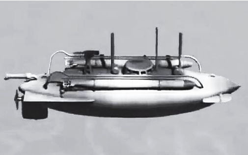 Её корпус был цилиндрическим. Изобретатель использовал какую-то цистерну, к которой прикрепил конусообразные оконечности, ставшие носом и кормой.