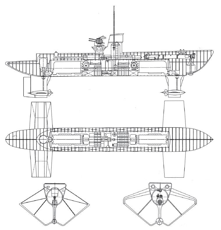 Низкобортные, полупогружные, полуподводные военные корабли - 35