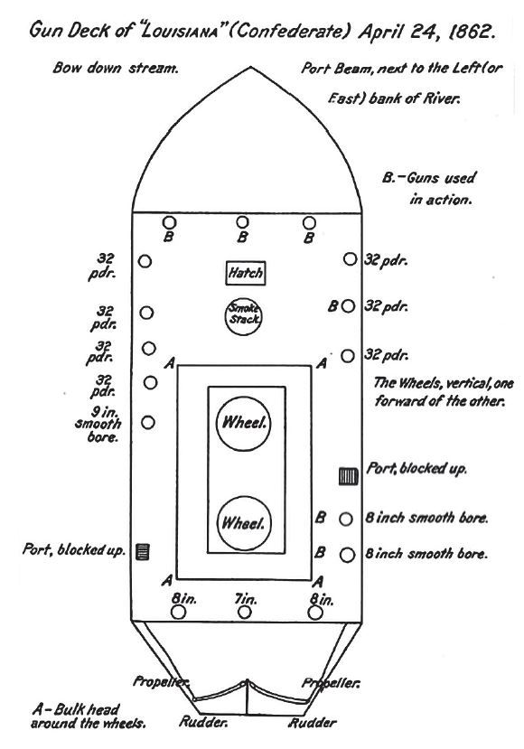 «Луизиана» (16 пушек, в т.ч. 8 тяжелых). Палуба скрыта в воде